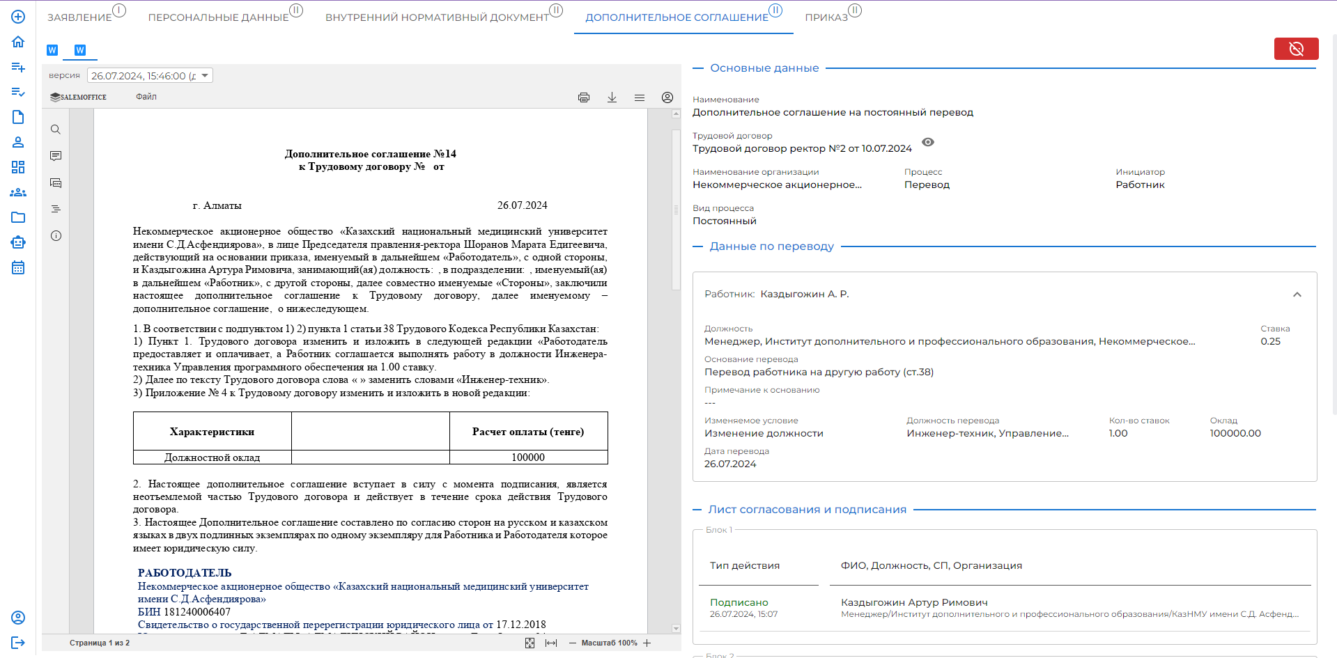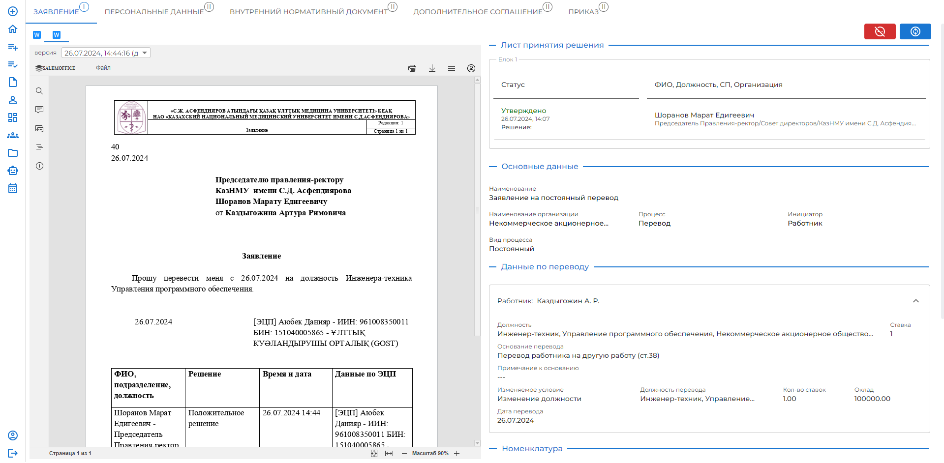 Приказ о переводе