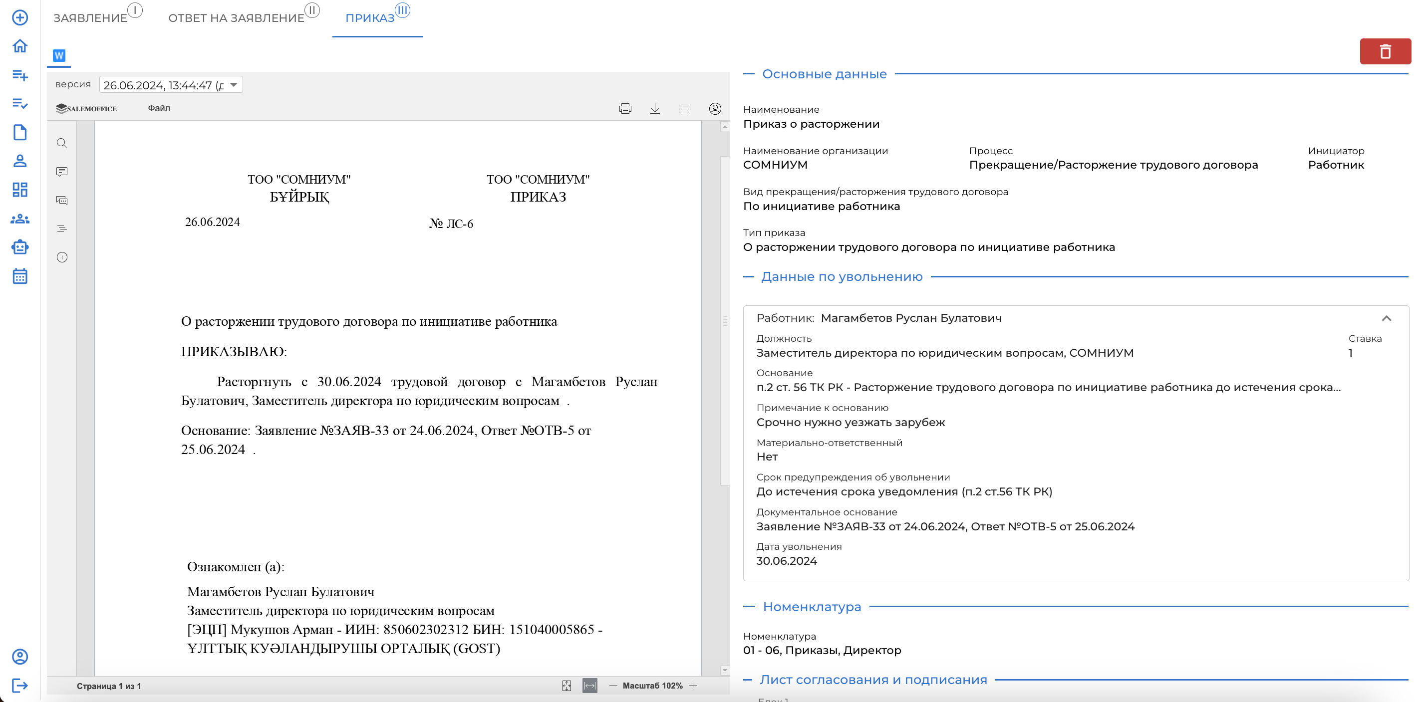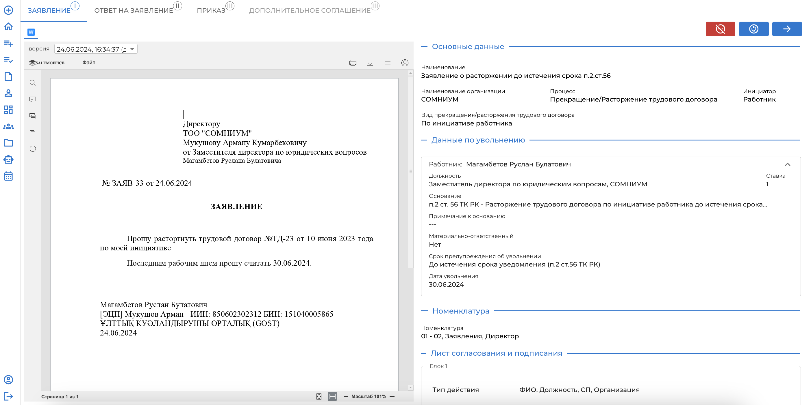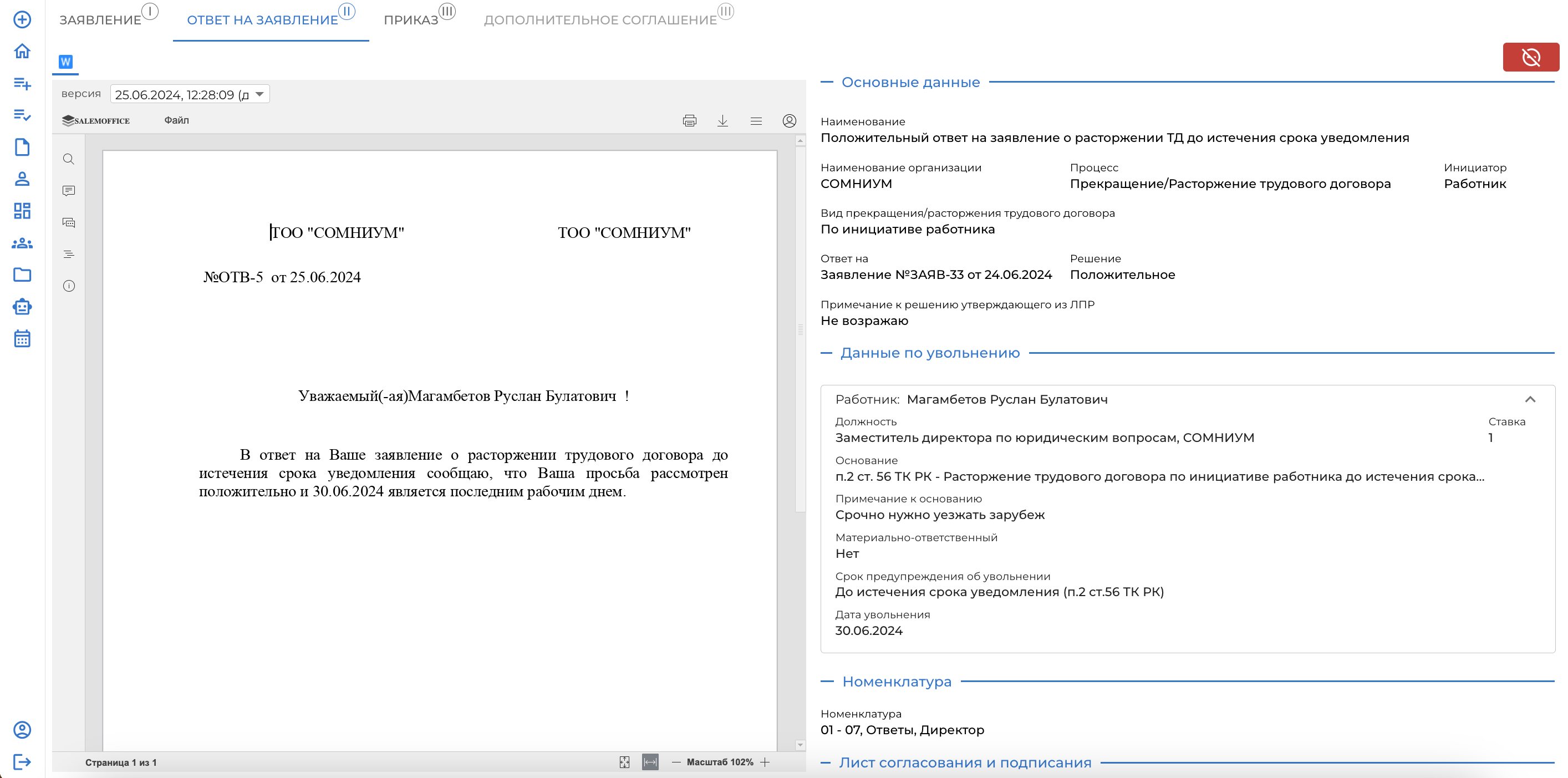 Ответ от работодателя на заявление о расторжении трудового договора до истечения срока уведомления от работника